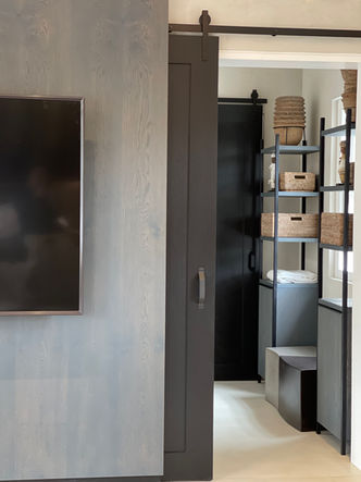 Nestled in the vibrant heart of Sandton, a tranquil haven was crafted for a dynamic young family, who embarked on their new life journey with cherished possessions in tow. The couple, both busy and accomplished, sought to create an oasis of calm and serenity within their home. Their vision was brought to life with a deliberate and cohesive color palette that flowed effortlessly from one room to the next, exuding a peaceful ambiance throughout. The clients placed their trust in my creative vision, granting me the freedom to design key areas of their home, including the main bedroom, TV room, dressing room, and bathroom. My aim was to maintain a tranquil atmosphere while infusing the space with an earthy and simplistic essence. This was achieved by incorporating dark timber elements, which contrasted beautifully with warm basket accents, adding depth and character to the rooms. Luxurious fabrics and plush rugs were selected to soften the overall look, enhancing the comforting and inviting feel of the space. In pursuit of simplicity and cohesion, the floor and wall finishes were harmoniously unified, extending seamlessly into the shower cubicle, further embodying the tranquil and uncluttered aesthetic the clients yearned for. This thoughtful design approach resulted in a serene and earthy living space, perfectly tailored to the family's lifestyle and aesthetic preferences.